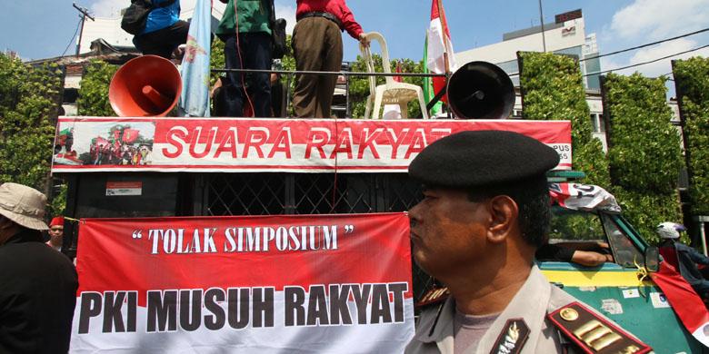 Senin (18/4). Mereka menentang pelaksanaan kegiatan Simposium Nasional